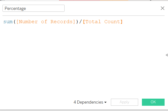| 13 | Create a Percentage Calculated Field to define the size of the bar chart. | ![]() |