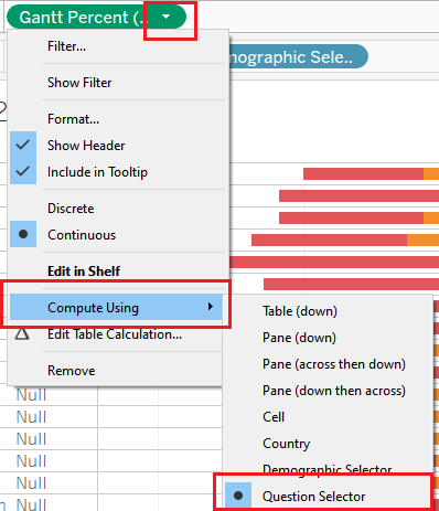 | 12 | Create a Gantt Percentage Calculated Field to define the size and scale of the likert scale diagram. | ![]() |