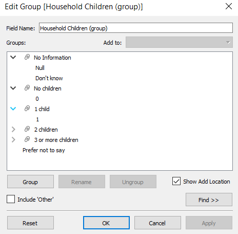| 24 | Repeat for the group creation step for Household Children, grouping them into fewer categories. | ![]() |