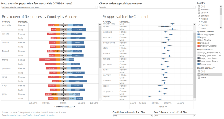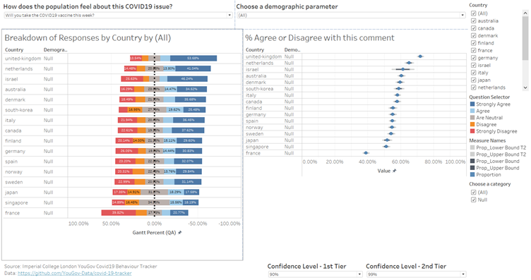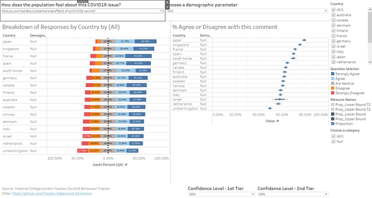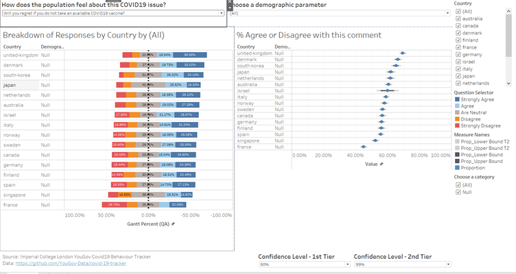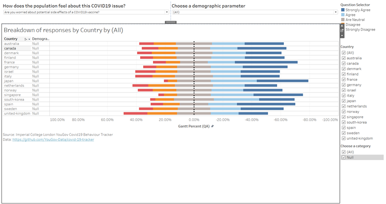Past vaccine development usually takes many years to develop, and that has caused some concerns, especially in Japan, which may have contributed to the lower confidence in vaccines and the greater concern with side effects, as shown in the visualisation. (Japan Times, 2020)