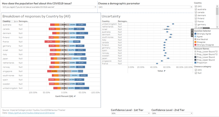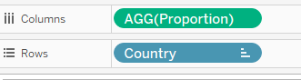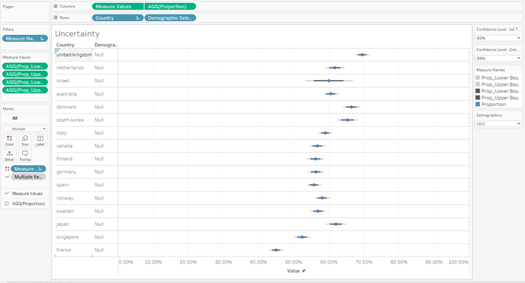 | 8 | Drag Proportion and Country into the Columns and Rows, respectively. This will create a preliminary baseline for the uncertainty chart. | ![]() |