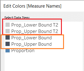 | 12 | Repeat step X to Y for a comparison level of confidence interval. Drag these new upper bounds and lower bounds into Measure Values. | ![]() |