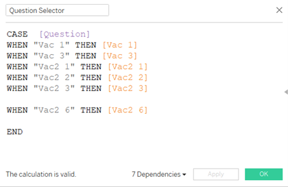| 5 | Create new Calculated Field and set the cases when different questions are selected. | ![]() |